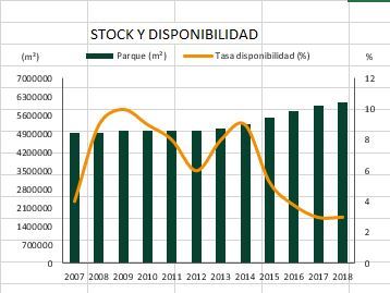 La tasa de disponibilidad de espacio logístico continúa en niveles muy bajos. A 1 de enero de 2019 era solo del 3%.