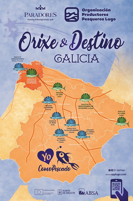 Bajo el lema “Orixe & Destino Galicia”, la iniciativa combina la gastronomía, la calidad del producto pesquero y la importancia del origen y destino Galicia vinculándose con el Camino de Santiago, especialmente este año al coincidir con “Año Xacobeo”. Una campaña que se denomina así porque la merluza y el bonito salen de la lonja del puerto de Burela y vuelven a la comunidad gallega siguiendo el Camino de Santiago a través de restaurantes de Paradores que están ubicados en diferentes rutas xacobeas.