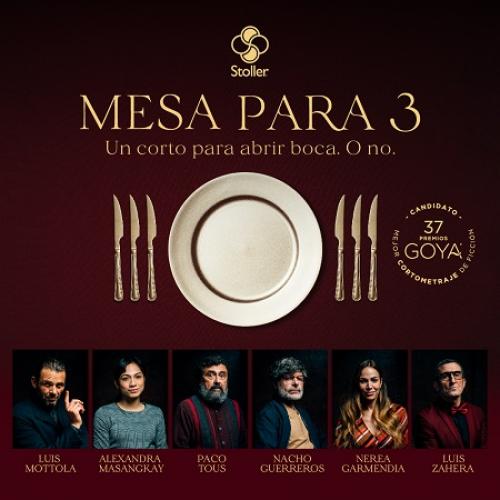 Se presenta estos días en los canales digitales “Mesa para 3”, un cortometraje producido por Stoller Europe que ya es candidato a los Premios Goya 2023. Una tensa comedia coral en la que Paco Tous, Luis Zahera, Nerea Garmendia, Nacho Guerreros, Luis Mottola y Alexandra Masangkay se ven implicados en una situación que saca a la luz sus luces y sus sombras.