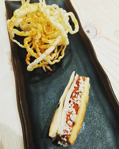 En la zona de barra de Delirios, Javier Rodríguez servirá a la salud de España un delicioso bocadillo, que como ocurre con toda su carta, es un claro homenaje a tierras leonesas y además tiene una apariencia muy patriótica… El bocata estará también en sus menús degustación como uno de los snacks principales.