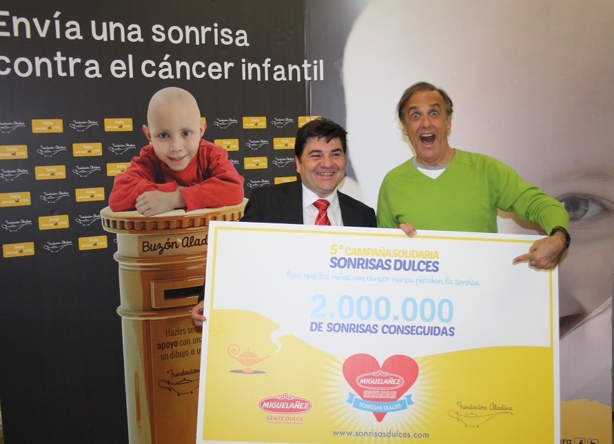 Migueláñez, empresa líder en el sector de confitería, entregó ayer el cheque solidario a la Fundación Aladina, dedicada a ayudar a los niños enfermos de cáncer y a sus familias. La sede de la Fundación, ubicada en Madrid, ha sido el escenario de la entrega del cheque, en el que se destacaban los más de 2.000.000 de clics que se recibieron en el vídeo de la campaña y que se han traducido en sonrisas para los pequeños.