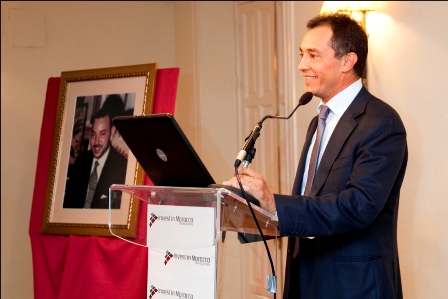 El ministro de Industria, Comercio y Nuevas Tecnologías de Marruecos, Ahmed Chami y el director general de la Agencia Marroquí de Desarrollo de Inversiones (AMDI), Fathallah Sijilmassi presidió el acto que tuvo lugar la noche de ayer a las 20:00h en el Palacete de Duques de Pastrana de Madrid. La AMDI es una de las apuestas del gobierno marroquí por la modernización y el aperturismo de su economía, teniendo como objetivo último atraer inversiones extranjeras a Marruecos. Al evento acudió un amplio elenco de empresarios de los sectores de la aeronáutica, el automóvil, el nearshoring, la construcción y las energías renovables, áreas de actividad en las que el reino alauí busca inversores españoles.