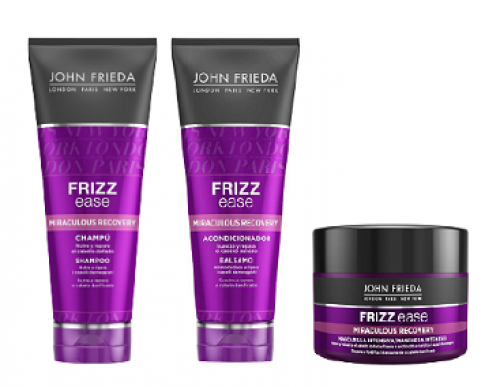 La gama Frizz Ease, pionera en el control del encrespamiento, propone fortalecer, recuperar y proteger el cabello con su línea Miraculous Recovery. Recupera el cabello más dañado y castigado, brindándole el brillo y vida necesarios para volver a tener una melena brillante, suave y bonita. Es el tratamiento perfecto para nutrir y reparar la melena.