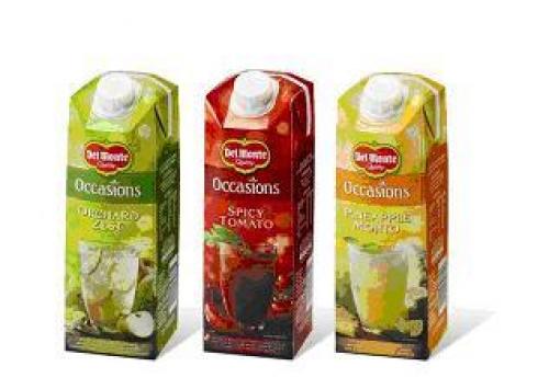 Del Monte ha sacado al mercado una nueva gama de productos, ‘Del Monte Occasions’, los cuales se presentan en envases de cartón combifitMidi 1.000 ml, con tapón de rosca combiSwift de SIG Combibloc. La nueva línea de zumos, con base de fruta se presenta en las excepcionales variedades de Mojito de Piña, Tomate Picante y Cóctel de sabor, ofreciendo así una elegante bebida que funcionan igual de bien sin alcohol.