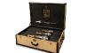 Creado en exclusiva para la ocasión por Stuart Vevers, este cofre de edición única está fabricado con materiales nobles como ante de color oro en su exterior, en combinación con un chivas negro, y un acabado interior de alcántara negra, siguiendo la gama cromática de Moët&Chandon.
