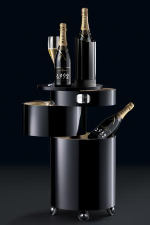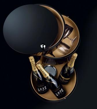 Combinando movilidad, comodidad y belleza, el Bar Boy cilíndrico va montado sobre ruedas, el compartimento inferior se abre mostrando los tres champagnes Grand Vintage y dispone además de un lujoso refrigerador, capaz de enfriar una botella a 10°C en 15 minutos. El compartimento central aloja cuatro copas de champagne Grand Vintage diseñadas especialmente por Riedel, el mítico creador de copas de vino, para resaltar las especiales cualidades (madurez, complejidad y personalidad enérgica) de estos vinos selectos. El compartimento superior se destina a otros accesorios.