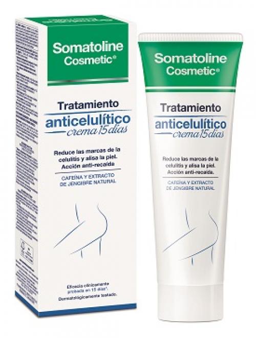 La cosmética anticelulítica es el arma preferida por las mujeres para combatirla. Si lo que quieres es eliminar esa piel de naranja, consiguiendo un aspecto de piel fina, suave y tersa, SomatolineCosmetic® recomienda el tratamiento anticelulítico crema 15 días que combate los nódulos adiposos pronunciados con una sola aplicación al día. Su secreto está en el perfecto equilibrio entre los ingredientes de su composición con el complejo activo BioActive-complexTM, que actúa de manera sinérgica y eficaz contra la celulitis.