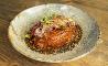 Con tanto vino no puede faltar un buen acompañamiento -de lo que se encarga José Miguel-, y al igual que en la carta líquida, aquí también hay sorpresas. Su cocina es de mercado, de autor y de la abuela pero 'con vanguardia'… Porque es un nieto muy aplicado y ha sabido conservar esa esencia de trabajar los productos de forma simple y aportando su toque. Entre los inamovibles de la carta hay opciones para todos los gustos, sí, para los clásicos y para los de paladar más ‘moderno’: Berenjena asada con salsa teriyaki y anchoa ahumada, Boniato a la brasa con salsa de chocolate y curry, Tartar de solomillo de ternera, Paletilla de IGP Cordero Segureño -poco habitual en Madrid- asada al aroma de la Sagra… Cualquiera de sus croquetas enamora y sin duda los arroces, como la Paella del ‘senyoret’ o el Risotto de boletus con jugo de cordero- han conquistado al barrio. De postre: Recuerdos de la infancia… Entre las sugerencias del día, que siempre hay porque le encanta innovar, creaciones que suenan tan apetecibles como: Rebozuelo con escabeche de granada o Ensalada de higos de temporada, parmesano, nueces y queso feta.
