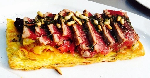 - Lomo de atún en escabeche con cogollo a la plancha y vinagreta cordobesa*