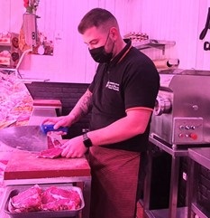 Luis Ortuño, carnicero y socio de Carnimad, contrató de aprendiz a su sobrino, hace ya 12 años, porque este no quería continuar estudiando. Ahora, aquel joven que se iniciaba en el oficio, José Antonio (28 años), lleva desde 2017 al frente de su propio negocio en Fuenlabrada, junto a sus dos empleados, y es un enamorado de la carnicería desde el día en que la descubrió. Asegura que no cambiaría su trabajo POR NADA.