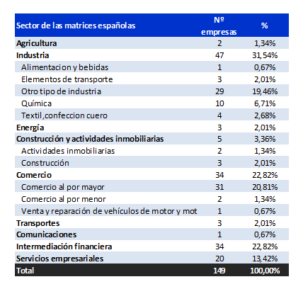 Industria, Comercio e Intermediación financiera son los sectores con más filiales en estos países