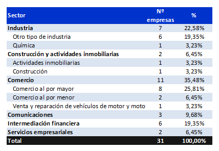 Los principales sectores de las 149 empresas españolas con participadas en Rusia son Industria, con el 31,54 %, seguido de Comercio e Intermediación financiera, con un 22,82 % cada uno.