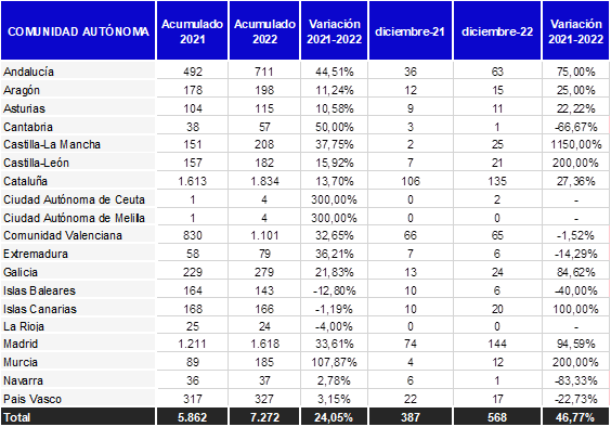 Nathalie Gianese, directora de Estudios de Informa D&B comenta que: “2022 cierra con la cifra de concursos más elevada desde 2013, la tercera más alta de la última década, tras el significativo incremento en el número de procesos registrado a partir de julio por el fin de la moratoria concursal”.
