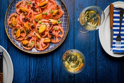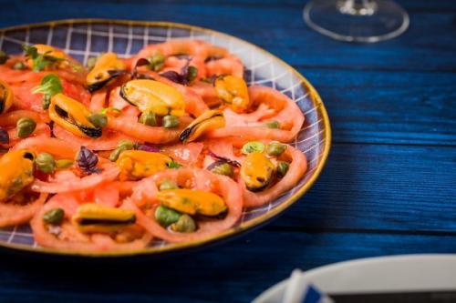 CARPACCIO DE TOMATE CON MEJILLONES Y ALCAPARRAS