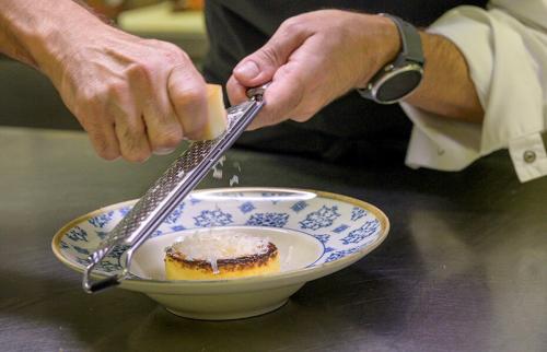 Elaborada siguiendo la técnica tradicional, se diferencia por su sabor profundo gracias al uso de queso de oveja curado, que además se ralla por encima justo antes de servir.