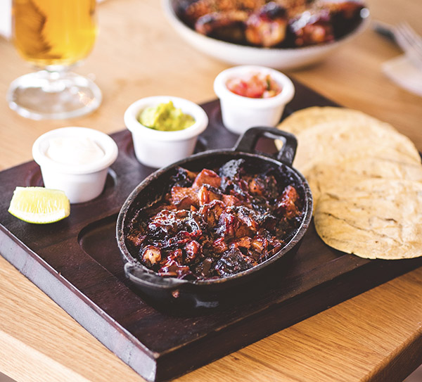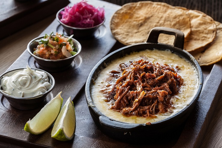 Brisket Tacos -con el corte más famosos de Texas-: llevan carne de pecho de vaca Black Angus (procedente de las mejores granjas del sur de los EEUU) ahumada lentamente a baja temperatura durante 14 horas, luego se trocea y se baña con su deliciosa salsa BBQ, con guacamole, pico de gallo y crema agria. Pulled Pork Tacos, con jugosa carne de cerdo desmenuzada y ahumada durante 7 horas, bañada con su BBQ, sobre una cama de queso mexicano derretido y acompañado de guacamole, pico de gallo y crema agria.