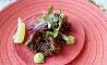 Tacos de rabo de toro con cebolla encurtida a la lima y crema de aguacate