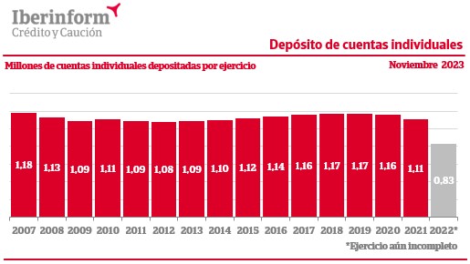 Al examinar el número de empresas que han depositado sus cuentas anuales en el Registro Mercantil, se observa una caída del 6% desde el máximo histórico registrado en 2007 hasta el último ejercicio completo, correspondiente a 2021. El incumplimiento de la obligación de depósito puede suponer importantes consecuencias para la empresa, entre ellas, el cierre provisional de la hoja registral, lo que impide inscribir en el Registro Mercantil ningún documento salvo alguna excepción como el cese o dimisión de los administradores, la motivación para calificar un concurso de acreedores como culpable, la posibilidad de que tanto la propia empresa como sus socios o acreedores reclamen a los administradores los daños y perjuicios causados por el no depósito o la imposición de fuertes multas por parte del Instituto de Contabilidad y Auditoría de Cuentas (ICAC).