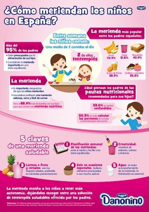 El 53% de los padres españoles reconoce no tener claras las recomendaciones nutricionales para los niños y el 50% no conoce las cantidades adecuadas para la merienda. Así lo revela el estudio Back to School* realizado por Danonino, un estudio internacional realizado a más de 4500 padres con hijos de edades comprendidas entre los tres y los seis años, sobre los hábitos de merienda de los niños en Austria, Brasil, Alemania, Polonia y España.