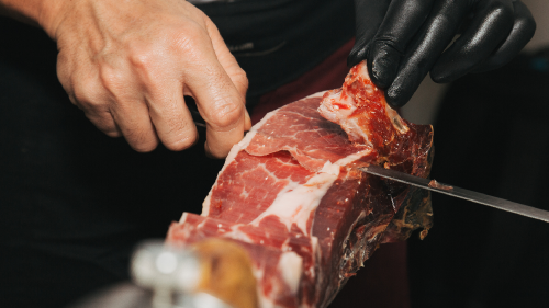 Forma y características físicas: la forma de la pata del jamón ibérico también puede proporcionar pistas sobre su calidad. “En la mayor parte de los casos, un buen jamón ibérico suele tener una pata estilizada con caña fina, además, el tocino exterior debe ser dorado, ligeramente translúcido y muy blando al tacto. En cuanto a la grasa interior, debe ser oleosa, translúcida y de tonos rosados”, explican.