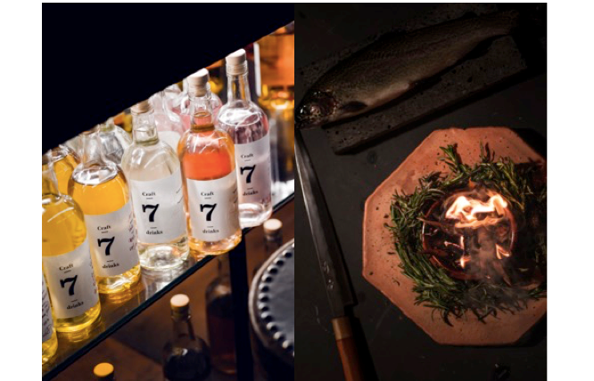 Desde el 7 Craft Bar a los minibares de todas y cada una de las habitaciones, cada botella y cada bebida que se presenta en el hotel responde también a esa filosofía local y artesanal, con una oferta de destilados macerados en el propio hotel, cerveza artesanal creada a medida para el 7 Islas e incluso refrescos caseros, apostando por lo natural y desarrollando una fuerte implicación con la comunidad local.