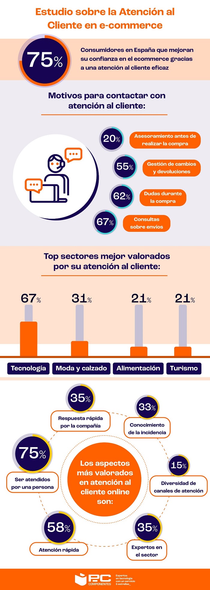 PcComponentes, el ecommerce español líder en tecnología, ha realizado un Estudio sobre la Atención al Cliente en ecommerce[1]. Con él, la compañía, ha querido conocer más sobre la percepción que los españoles tienen de este servicio a la hora de realizar sus compras online. Entre los principales datos del estudio, destaca que el 75,2% de los consumidores considera imprescindible un buen servicio de atención al cliente para confiar en un ecommerce.