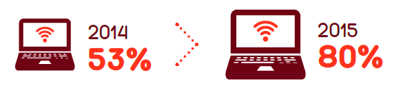 El 83% de los hoteles encuestados afirma ofrecer conexión Wi-Fi de forma gratuita, una cifra que salta al 97% en los países de la región APAC. El 92% de los viajeros ha utilizado los servicios de Internet para mantenerse en contacto con amigos y familiares, con un 74% que afirma haber utilizado servicios gratuitos de Wifi. El 33% utiliza los datos de su teléfono móvil mientras que el 31% activa el servicio de datos en roaming.