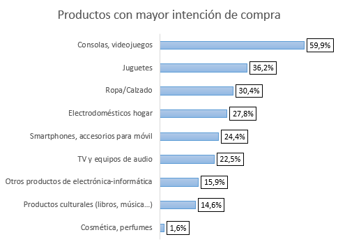 Las consolas y videojuegos tanto para consumo propio como para regalos serán la estrella del Black Friday (59,9% de los consumidores declaran que compraran estos productos), seguidos de los Juguetes (36,2%) y la Ropa y calzado (30,4%).