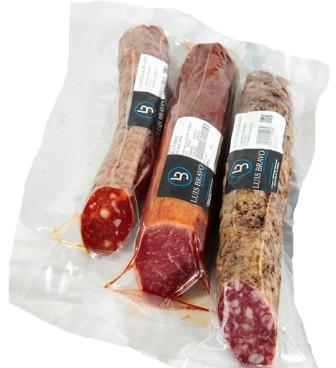 · Longaniza de chorizo y de salchichón ibérico de bellota. Longaniza “Roja” y “Blanca” de herradura o vela, elaborada únicamente a partir de magro seleccionado del cerdo ibérico, sin ningún añadido de grasas. Piezas de 0,45 kg. PVP. 6,60 €.