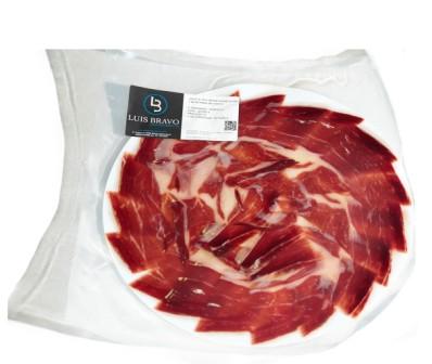 · Sobre de Jamón Ibérico de Bellota cortado a cuchillo. Jamón Ibérico Puro de Bellota cortado a cuchillo. Sobres de 100 gr. PVP. 15,00€.
