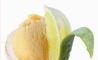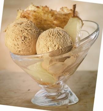 Plegar la crepe en 4 trozos. Colocar encima la pera y a un lado, las dos bolas de Carte d’ Or Dulce de leche.