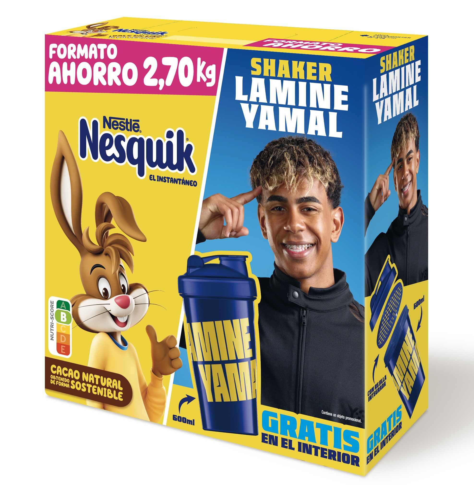 En ella, Lamine Yamal aparece junto a Quicky, convirtiendo esta lata en un must-have para los incondicionales de la marca y del jugador. Además, los packs grandes de Nesquik incluirán una botella shaker con el nombre del jugador.