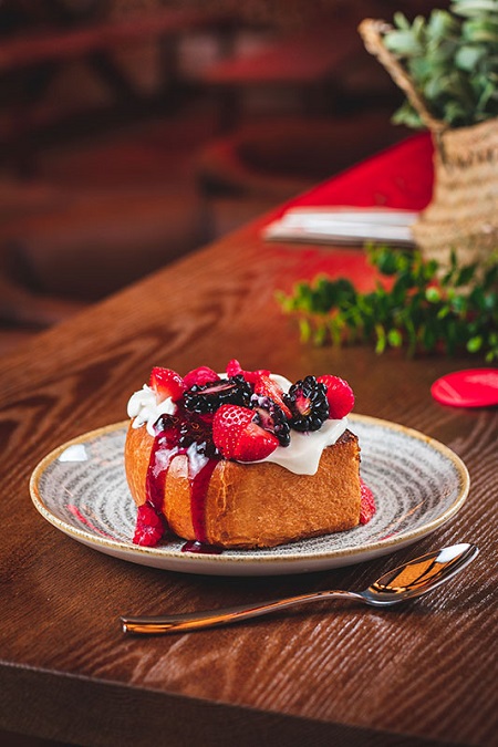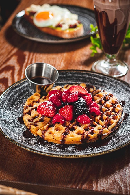 El NYBrunch comienza con la sección ‘Eggs’ y los proponen Rancheros o Benedict. El siguiente apartado es para el pan y la bollería, donde encontramos desde el clásico Croissant plancha, hasta uno relleno de pavo ahumado, rúcula y huevo -es amor a primera vista-, y una selección de tostadas de lo más variadas entre las que no faltan la siempre apetecible de aguacate, AOVE y tomates semisecos o la tan de moda French Toast: brioche con queso crema, confitura de arándanos y frutos rojos, una auténtica locura. En un restaurante como este no podían faltar los pancakes ni lo waffles con sirope de distintos sabores y fruta. ¿Que aún no hemos encontrado lo que buscamos?, pues seguimos profundizando en la carta hasta los ‘Sándwiches’, con clásicos como el Croque Madame o directamente optamos por alguna de las burgers de su carta. A todas las elaboraciones se les pueden añadir extras de pavo, frutos rojos, salsas, etc. Y como es habitual en la firma, piensan en todos y sirven una opción más ligera, el Healthy bowl, con una base de yogur griego con granola casera ecológica, confitura de frutos rojos, coco rallado, mezcla de frutos rojos y plátano. Para finalizar, nada como detenerse en su Sweet Corner, con cuatro tartas a elegir. Entre las bebidas hay batidos, zumo de naranja y cafés.