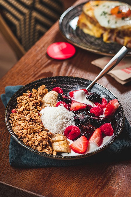 Abre en horario ininterrumpido y desde bien temprano puede disfrutarse a diario de un desayuno-brunch que el cliente confecciona a su gusto, escogiendo entre una irresistible variedad de huevos, tortitas, sándwiches, burgers, bollos, bowls, batidos… por supuesto, todo al más puro estilo neoyorquino