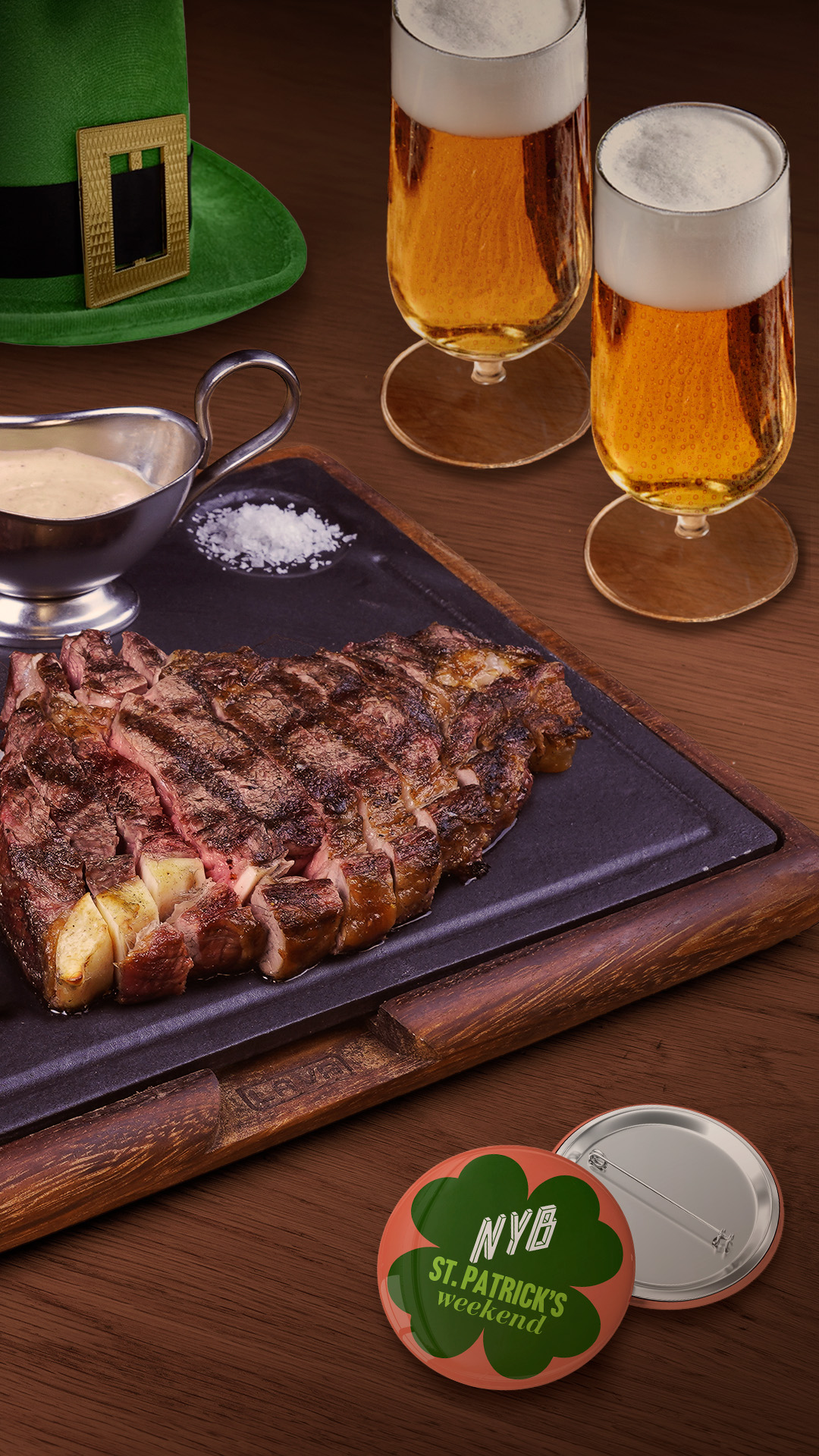 ¡New York Burger (www.newyorkburger.es) pone la carne en la parrilla! Sí, sí, la carne -que no las burgers, aunque también…- porque llegan a la carta dos cortes excepcionales a los que va a ser difícil resistirse: New York Steak, un suculento entrecot de lomo bajo de unos 300 gramos y Rib Eye, es decir, un centro de lomo alto de unos 600 g, pensado para compartir. Ambos son de Angus, y el proveedor de confianza de Pablo Colmenares -chef ejecutivo al frente de la firma-, que le distribuye los lomos de los que salen estos jugosos cortes, es La Finca. Los recién llegados se hacen en su parrilla de brasa y leña, al punto deseado por el cliente, y se acompañan de guarnición -ensalada de col o NYB; totopos de maíz con queso cheddar, patatas gajo, fritas o curly; batata o patata asada- y de salsa de pimienta o bearnesa. Descubrirlas será un plan perfecto para celebrar St. Patrick, porque el 16 y 17 de marzo, invitan a una cerveza al pedir estas piezas… Por supuesto, sus camareros irán ataviados esos días al más puro estilo irlandés y neoyorquino, con los divertidos gorros verdes para ‘trasladarnos’ a la Gran Manzana, donde se celebra el mayor desfile del mundo con motivo de esta efeméride.