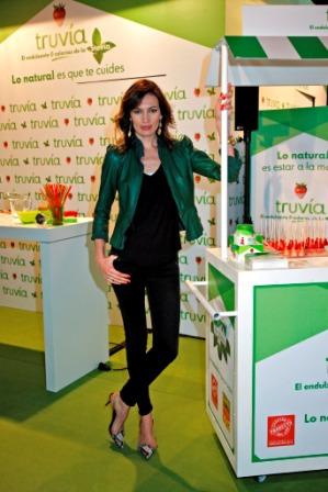 · La modelo de prestigio internacional Nieves Álvarez y el diseñador Juan Duyos deleitaron a los asistentes del Cibelespacio preparando un original batido de frutas endulzado con Truvía®.