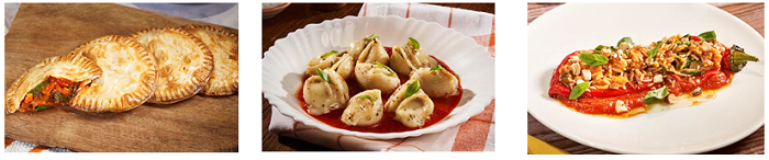 Las recetas disponibles para la variedad de Orlando Creaciones Suave, salsa de toque ligero conseguido con pimiento asado y cebolla que acompaña de forma especial a los platos veggies, son: la empanada orlandera, las conchas de pasta rellenas de gorgonzola, calabacín y pera, y el pimiento asado relleno.