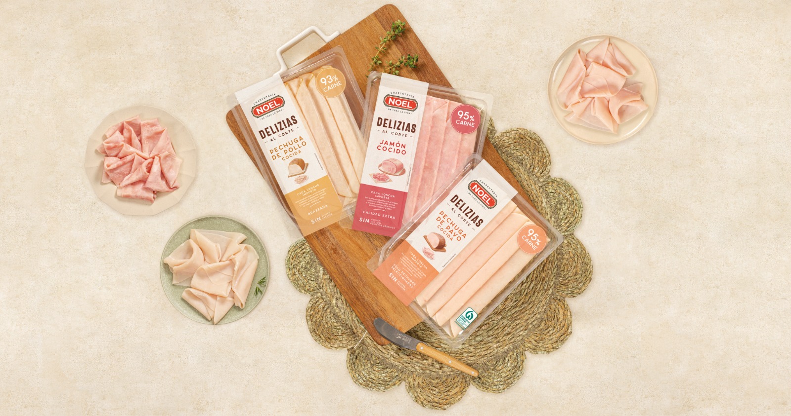 Con la voluntad de continuar elevando sus estándares, Noel sigue evolucionando su gama de productos más emblemática: Delizias. En línea con la creciente demanda de opciones clean label, o receta limpia, centrada en productos más auténticos y de mayor calidad, la marca da un paso decisivo eliminando los conservantes del jamón cocido extra, la pechuga de pavo y la pechuga de pollo Delizias Al Corte. Al mismo tiempo, estas referencias se presentan con un porcentaje cárnico del 95%, en el caso del jamón y la pechuga de pavo, y del 93%, en el caso de la pechuga de pollo; posicionándose como productos de alto valor nutricional.