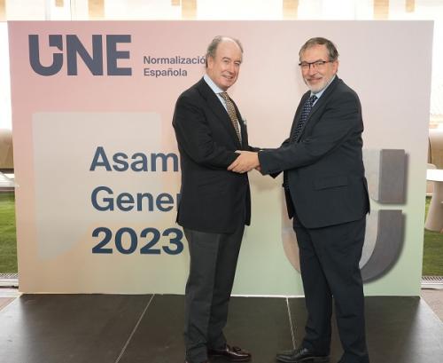 La Asociación Española de Normalización, UNE, ha celebrado hoy su Asamblea General, en la que se ha presentado el Informe Anual 2022, que recoge las principales actividades desarrolladas por la Entidad el pasado ejercicio; y se han entregado los Premios UNE de Normalización 2023. El subdirector general de Calidad y Seguridad Industrial del Ministerio de Industria, Comercio y Turismo, José Manuel Prieto, ha clausurado la Asamblea, a la que han asistido un centenar de representantes de los sectores económicos españoles, las Administraciones públicas y de otras entidades relevantes.
