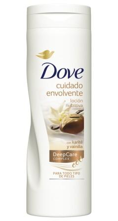 La gama Dove Cuidado Envolvente también cuenta con la loción corporal con manteca de karité y vainilla, una crema nutritiva con un alto contenido en glicerina y extractos de manteca de karité que proporciona un cuidado superior de la piel al mismo tiempo que te envuelve en una fragancia sensorial.