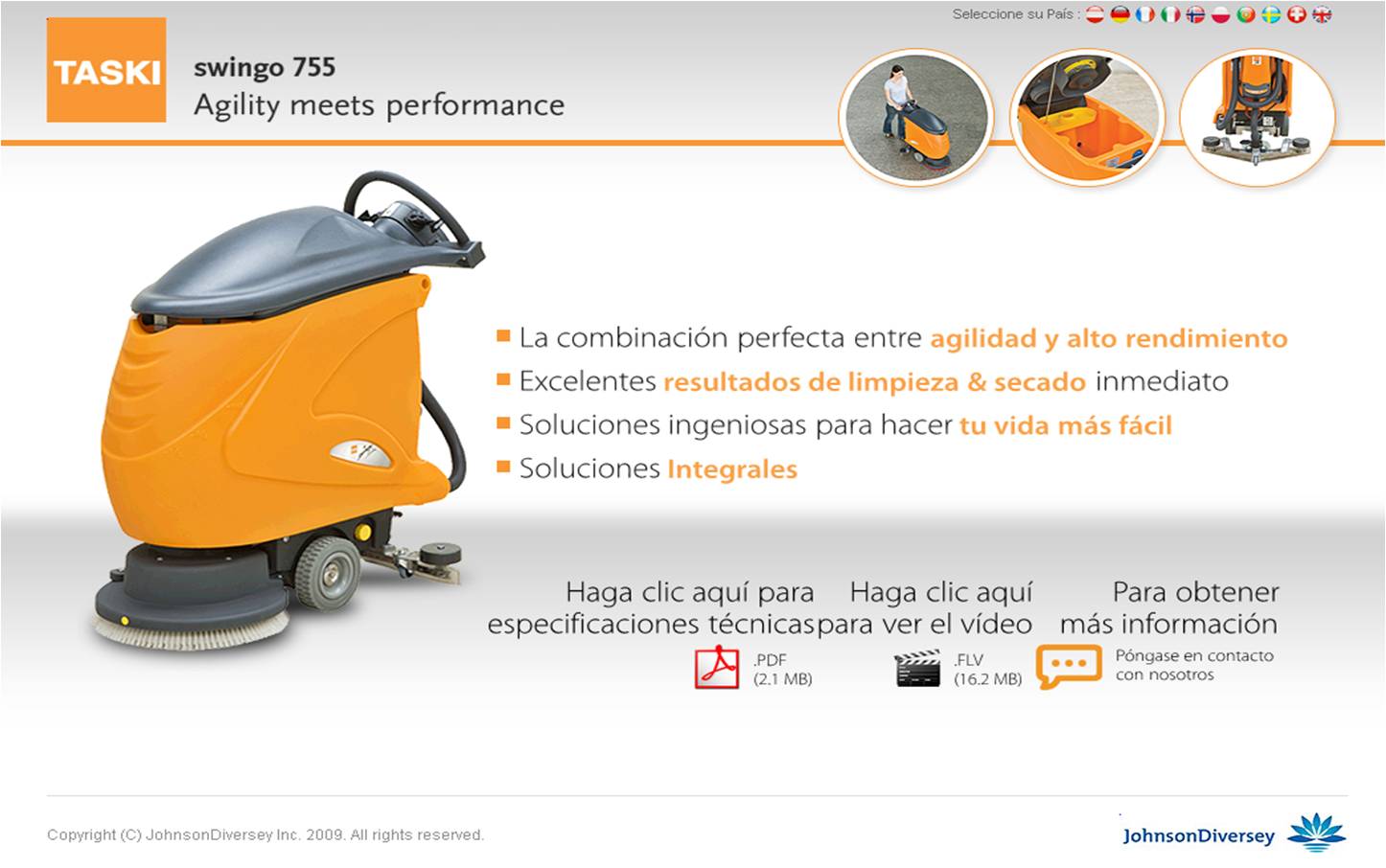 JohnsonDiversey, empresa líder en productos y sistemas de limpieza e higiene profesional, presenta una nueva página web creada especialmente para uno de sus últimos productos: la fregadora secadora Taski Swingo 755B.