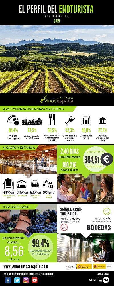 La Asociación Española de Ciudades del Vino (ACEVIN) ha hecho público el décimo Informe sobre la Demanda del Turismo del Vino, realizado a través del Observatorio Turístico de las Rutas del Vino de España. Con este estudio se persigue obtener la imagen más acertada posible del enoturista de nuestro país y estudiar su evolución a lo largo del tiempo. Así, el informe recoge aspectos relacionados a las motivaciones del viaje; la organización del mismo; los destinos elegidos; el origen, edad y perfil profesional y sociodemográfico del visitante; el nivel de satisfacción y otros indicadores como el gasto y la estancia media.
