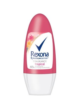 Presente ya en toda la gama de spray de Rexona, la revolucionaria tecnología MotionSense™ se traslada ahora a todas las variedades roll-on de la marca, con fragancias mejoradas y más duraderas. Todas ellas pasan a proporcionar una protección superior conservando las propiedades específicas de cada una: así, la variedad Aloe Vera ofrece una agradable sensación de frescor, mientras que Rexona Tropical presenta una fragancia más marcada gracias a su fresca combinación de flores y frutas exóticas y un toque de jazmín. Por último Rexona Cotton, con extracto de algodón, mantiene la piel de la axila limpia y fresca por más tiempo.