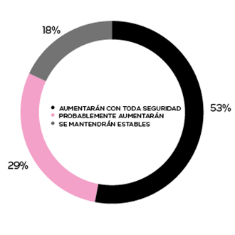 También las subidas de tipos de interés tendrán un impacto en el sector, aunque no con más intensidad que en otras actividades económicas. Así lo creen el 68% de los encuestados, frente a un 29% de compañías que prevén que el impacto en moda sea más acusado.