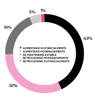 Hay un gran consenso entre las empresas en que la inflación será generalizada en el sector: una aplastante mayoría, del 95%, cree que los precios aumentarán en 2022, por sólo un 5% de empresas que anticipan una contracción.
