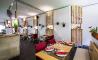 En el luminoso y agradable local predomina la madera, presente en los palets con plantas, frutas y lámparas que decoran las paredes, los colores claros y algunos detalles en rojo. Al fondo de la sala hay una barra perfecta para abrir boca con un pisco sour o un Ron Cuba libre preparado en mesa muy apetecible antes o después de comer.