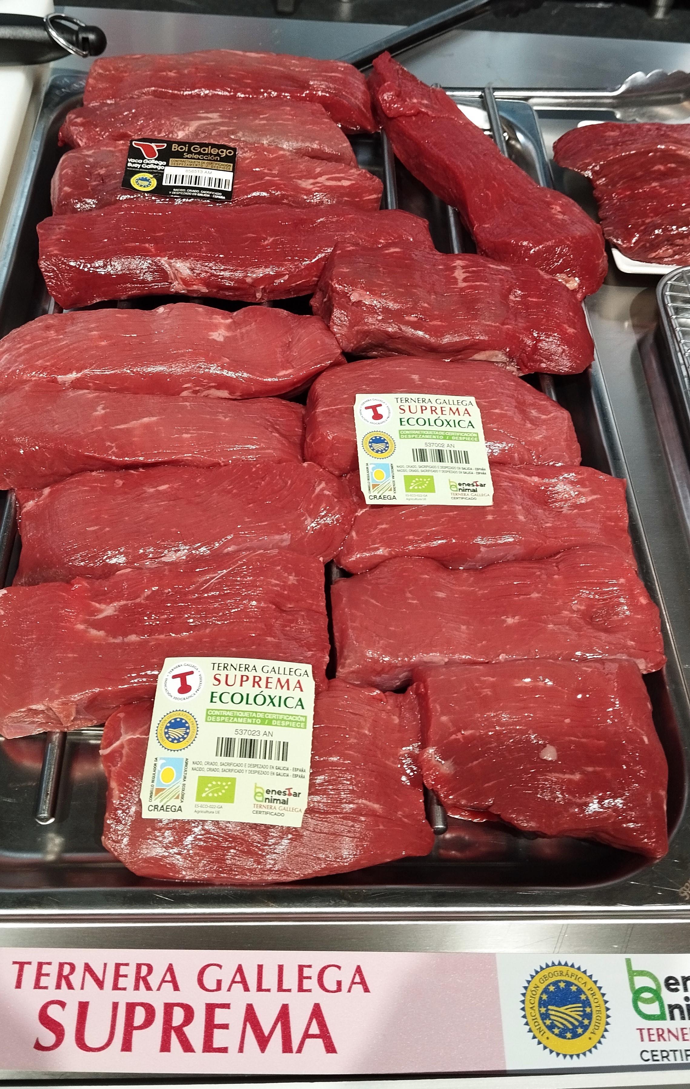 En estas elaboraciones, las carnes certificas por la IGP Ternera Gallega y por la IGP Vaca Gallega-Buey Gallego se acompañaron de otros sellos de calidad, como Fabás de Lourenzá o Pataca de Galicia, además de vinos de las DO Rías Baixas de Monterrei. De postre, IGP Tarta de Santiago