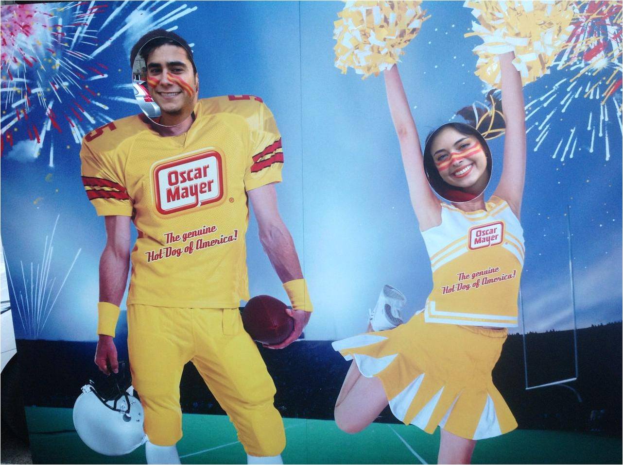 Aproximadamente una hora antes de cada partido, el equipo de Oscar Mayer colocaba un photocall con la imagen de una cheerleader y de un jugador de fútbol americano donde el público podía meter la cabeza y posar así en una foto divertida para amenizar el evento.