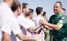 Los baristas fueron convocados en los respectivos estadios, donde recogieron las equipaciones en los vestuarios, y llegaron al campo en los autobuses oficiales de los clubes. Además, recibieron recomendaciones y mensajes motivacionales de los técnicos de sus equipos. La gran sorpresa final vino de la mano de algunas de sus estrellas favoritas. Sergio León y Jesé, del Real Betis Balompié, y Gonalons y Vaclík, por parte del Sevilla FC, colgaron las botas de fútbol para servirles unas cañas tras el partido. Un merecido premio gracias al que compartieron impresiones y anécdotas con sus jugadores favoritos brindando con Cruzcampo.