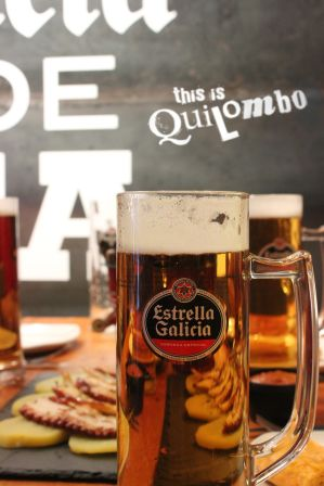 Durante 15 días se podrá disfrutar en Quilombo de platos típicos gallegos como pulpo a la parrilla con patatas, empanada gallega, mejillones al vapor, pimientos de Padrón o filloas de crema flambeadas con orujo, entre otros, acompañado de cañas y jarras de 1 litro de buena cerveza “Estrella Galicia”.